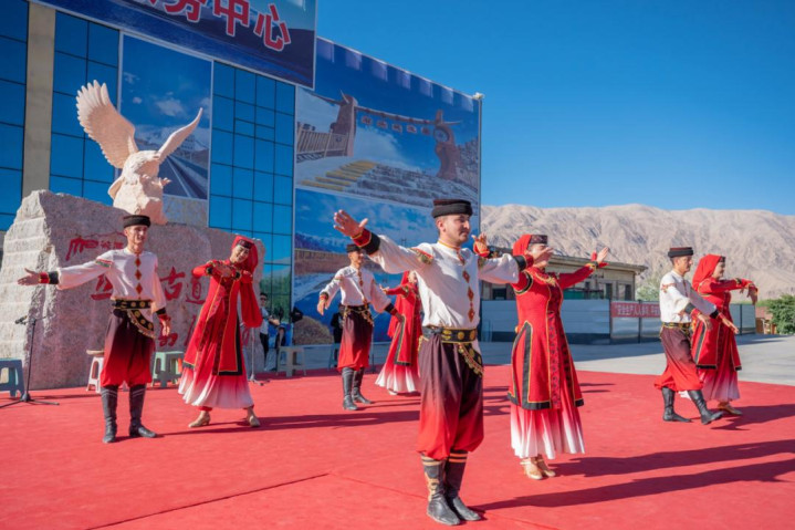 帕米尔旅游风景区游客服务中心的歌舞表演。喀什地区融媒体中心 实习记者曹宇婷 摄